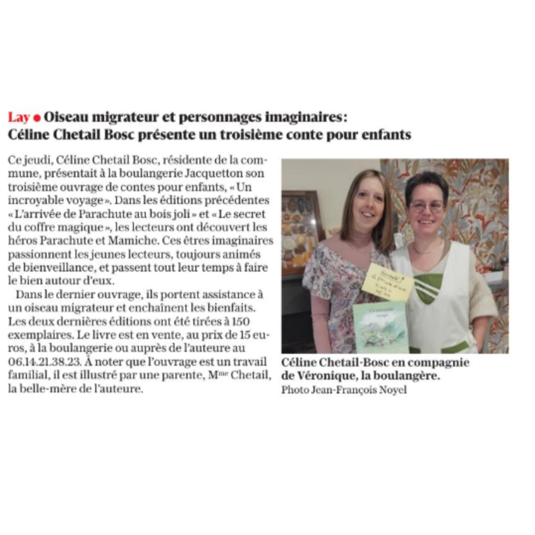 Céline Chetail Bosc édite un livre pour enfants "L'arrivée du parachute du Boisjoli"
